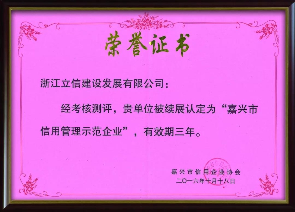 立信集團(tuán)連續(xù)多年取得“守合同重信用企業(yè)”,“浙江省建筑業(yè)誠信企業(yè)”等榮譽(yù),無一不體現(xiàn)公司以誠信為立商之本,恪守企業(yè)理念和核心價(jià)值觀,是企業(yè)長期發(fā)展的基石。