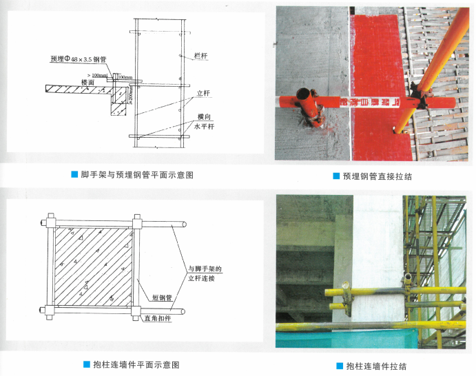 6.4.5 連墻件中的連墻桿應(yīng)呈水平設(shè)置,當(dāng)不能水平設(shè)置時(shí),應(yīng)向腳手架一端下斜連接。