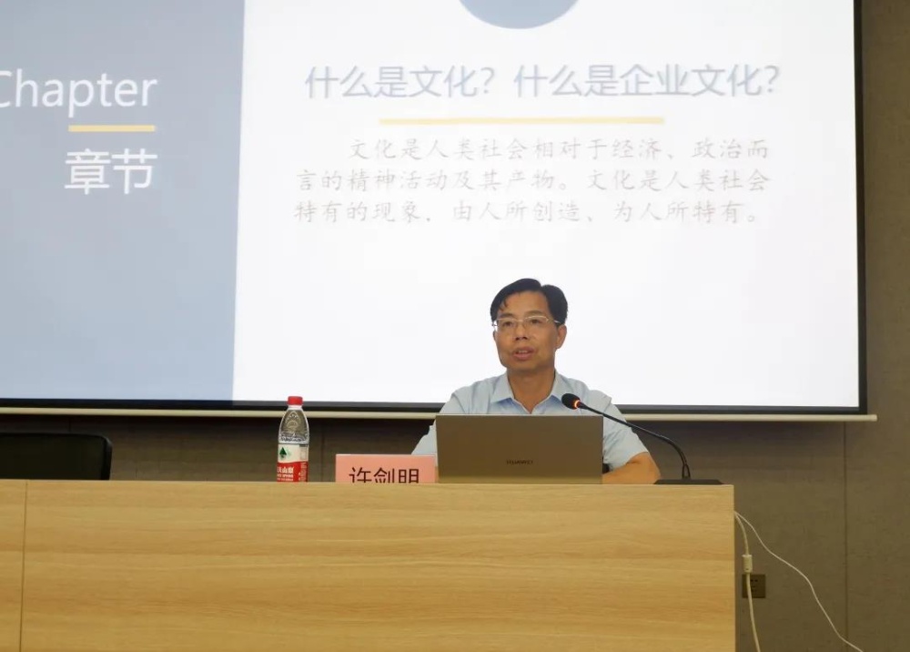為提升集團(tuán)文化建設(shè)水平,增強(qiáng)員工的凝聚力和向心力,7月2日下午,集團(tuán)召開企業(yè)文化建設(shè)專題培訓(xùn)。本次培訓(xùn)由行政部經(jīng)理姚佳宇主持,原市建設(shè)局黨委副書記、集團(tuán)黨建指導(dǎo)員許劍明主講,全體行政人員參加。