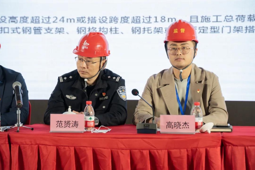 會(huì)議第三項(xiàng)議程,桐鄉(xiāng)市建筑工程質(zhì)量安全指導(dǎo)小組質(zhì)量組組長(zhǎng)趙堅(jiān)解讀了承插型盤(pán)扣式鋼管支模架技術(shù)要點(diǎn),安全組組長(zhǎng)沈松垚解讀了承插型盤(pán)扣式鋼管外腳手架技術(shù)要點(diǎn)。