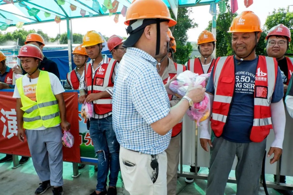 在施工現(xiàn)場(chǎng),洪志躍、張玉升等將毛巾、香皂、礦泉水等防暑降溫用品一份份送到工友們手里,向一線施工人員了解工作和生活情況,叮囑大家在高溫期間要注意保重身體、勞逸結(jié)合,并對(duì)他們的艱辛付出表示感謝。同時(shí),要求項(xiàng)目部要合理安排好施工時(shí)間,在確保安全的前提下,高質(zhì)量推進(jìn)項(xiàng)目建設(shè),圓滿完成任務(wù)。