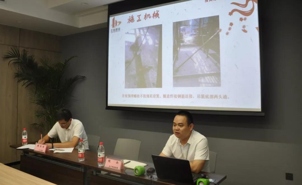 會(huì)上,生產(chǎn)部副經(jīng)理倪杰對6月安全生產(chǎn)月活動(dòng)情況作了簡單匯報(bào),從高處作業(yè)、外腳手架、起重機(jī)械、施工用電等方面進(jìn)行展開,指出現(xiàn)目前存在的安全隱患,并提出工作要求。