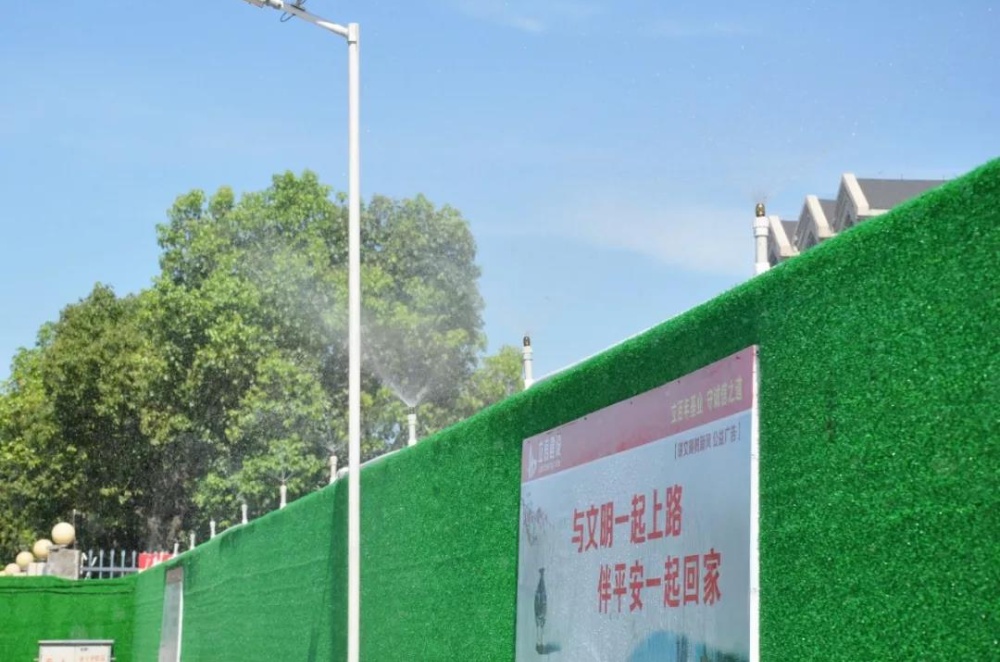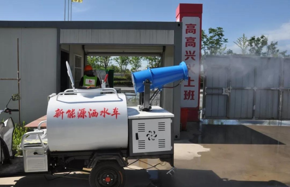三、設(shè)置車輛沖洗平臺(tái)、道路噴淋系統(tǒng)、霧炮機(jī)、灑水車等設(shè)備設(shè)施,對(duì)進(jìn)出場(chǎng)車輛進(jìn)行沖洗,灑水噴霧降塵等等。
