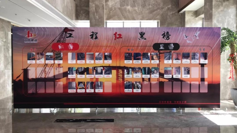 本次活動在公司大廳將工程質(zhì)量紅黑榜做成展板,將各項目上安全方面及質(zhì)量方面值得學習或是引起警戒的照片進行公示。