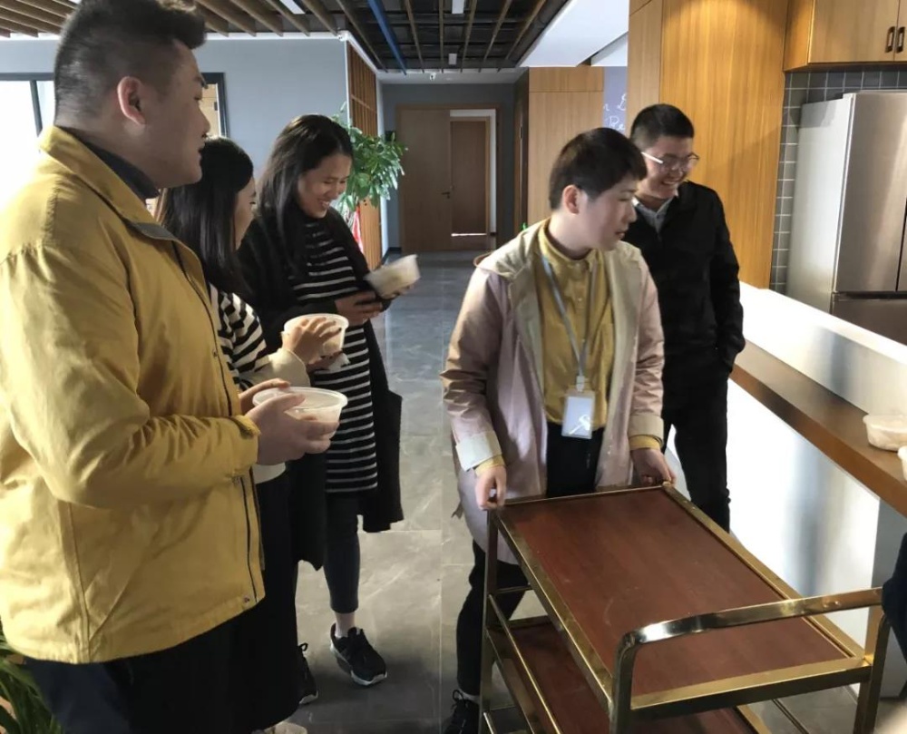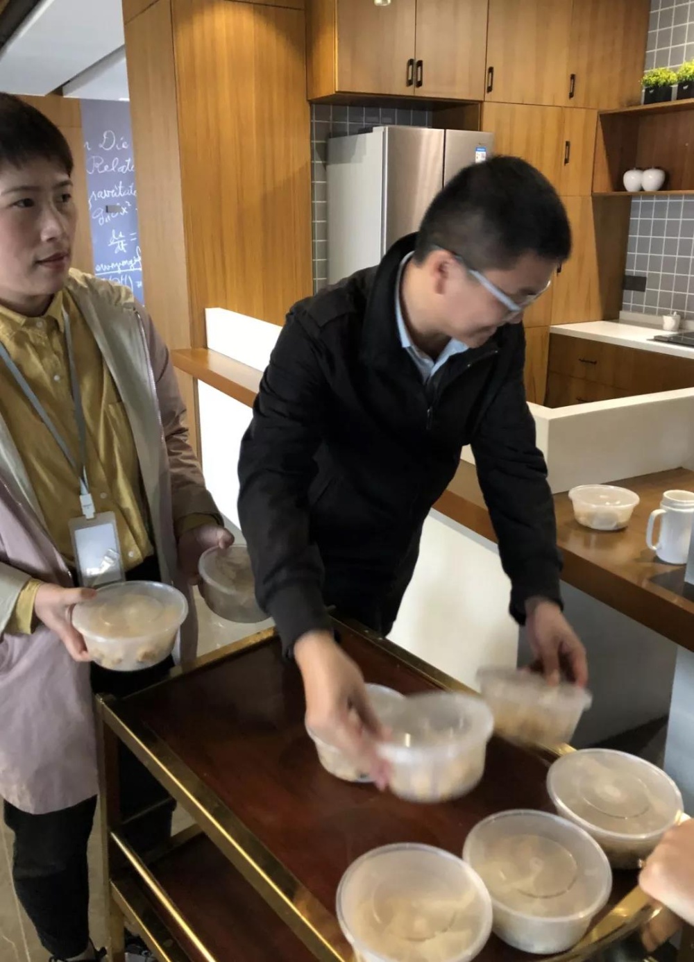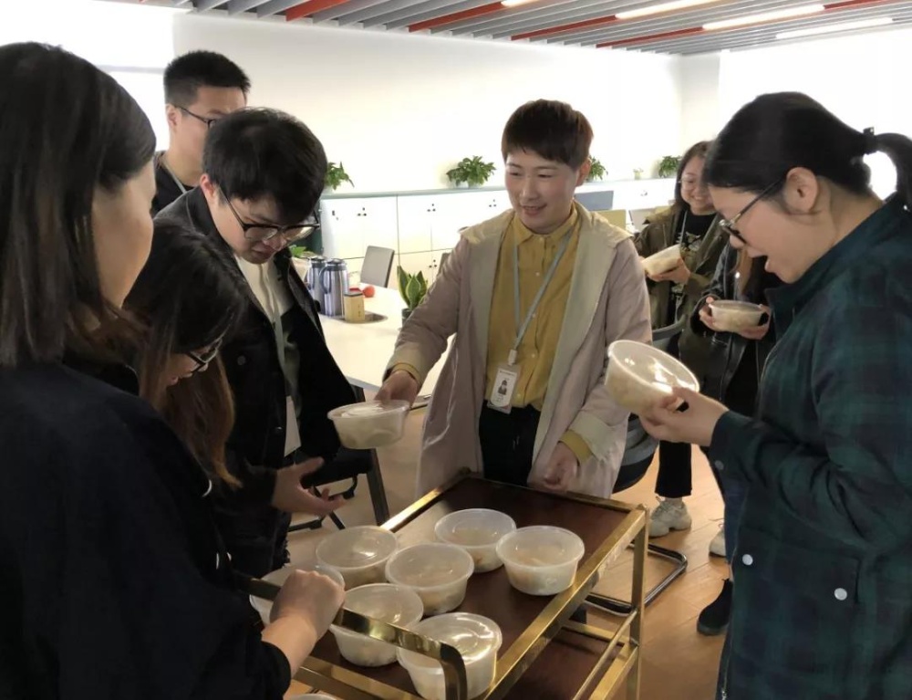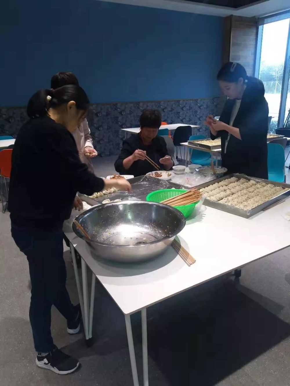 行政部在這一天向全體行政人員舉行“送溫暖”活動(dòng)。早早地準(zhǔn)備好了各種食材,隨著緊鑼密鼓的忙碌,一個(gè)個(gè)餃子在手中成型。