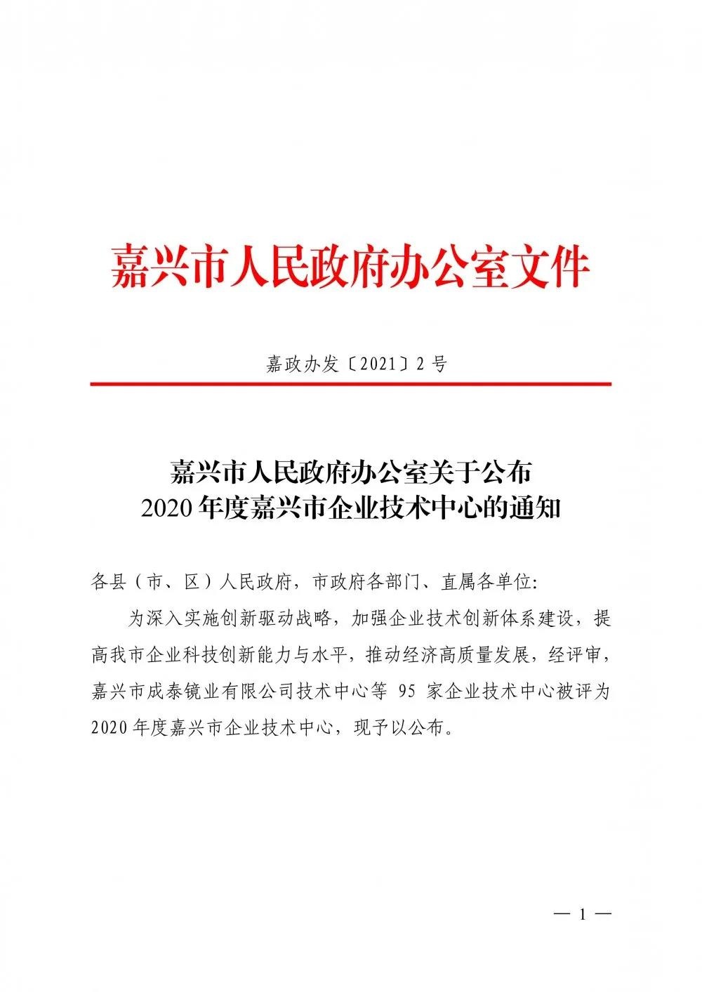 近日,接嘉興市人民政府辦公室通知,集團技術(shù)中心被認定為2020年度嘉興市企業(yè)技術(shù)中心。在本次嘉興市企業(yè)技術(shù)中心認定中,集團技術(shù)中心綜合評分位居前列。