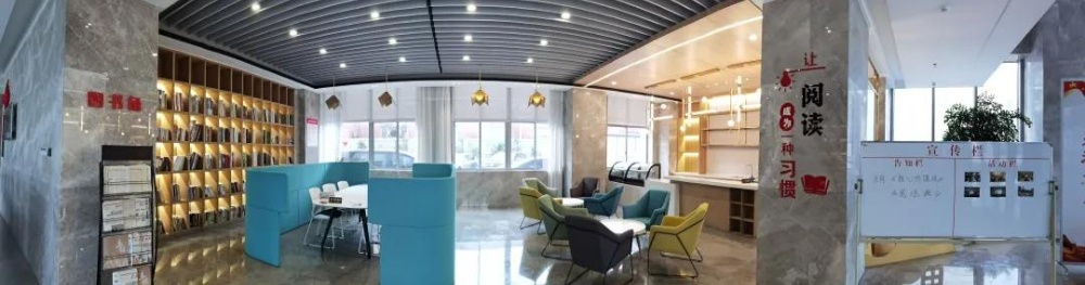 “圖書室”位于一樓大廳,運用C型隔斷,現有藏書1000余冊,涵蓋建筑、哲學、管理、文學、教育、科技、政治、法律等10余種類別,供職工免費借閱,豐富業(yè)余精神生活。