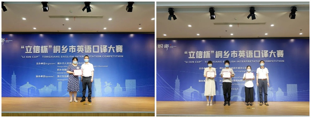 桐鄉(xiāng)市政府辦副主任聞偉東、桐鄉(xiāng)市翻譯學(xué)會(huì)會(huì)長(zhǎng)譚云青、桐鄉(xiāng)市政府辦黨組成員、友協(xié)副會(huì)長(zhǎng)陸亞琴、桐鄉(xiāng)市鳳鳴高級(jí)中學(xué)校長(zhǎng)莊志琳、桐鄉(xiāng)市教研科研室副主任董一杰分別為獲獎(jiǎng)選手頒獎(jiǎng),我集團(tuán)為本次大賽提供場(chǎng)地和贊助。