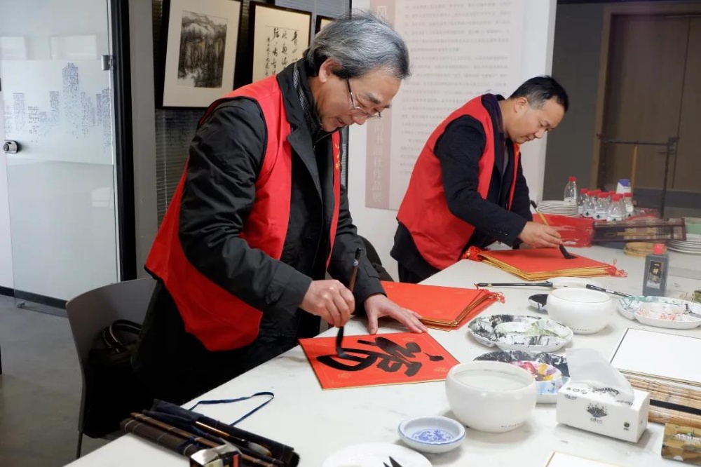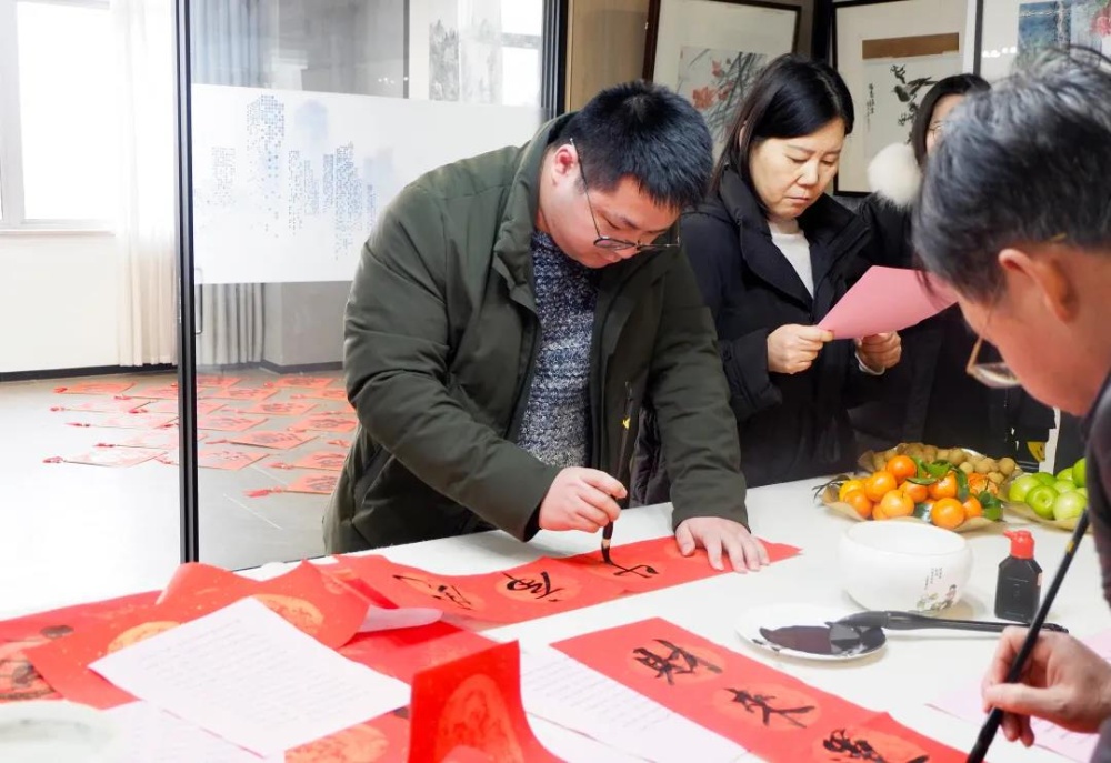 活動(dòng)于公司三樓舉行,在黨建指導(dǎo)員許劍明以及專業(yè)老師的帶領(lǐng)下,將新春的美好祝愿以送“?!钡男问将I(xiàn)給全體員工。在老師們的揮毫潑墨下,一幅幅畫(huà)作和福字躍然紙上,前來(lái)參加活動(dòng)的員工也興致沖沖地加入其中。