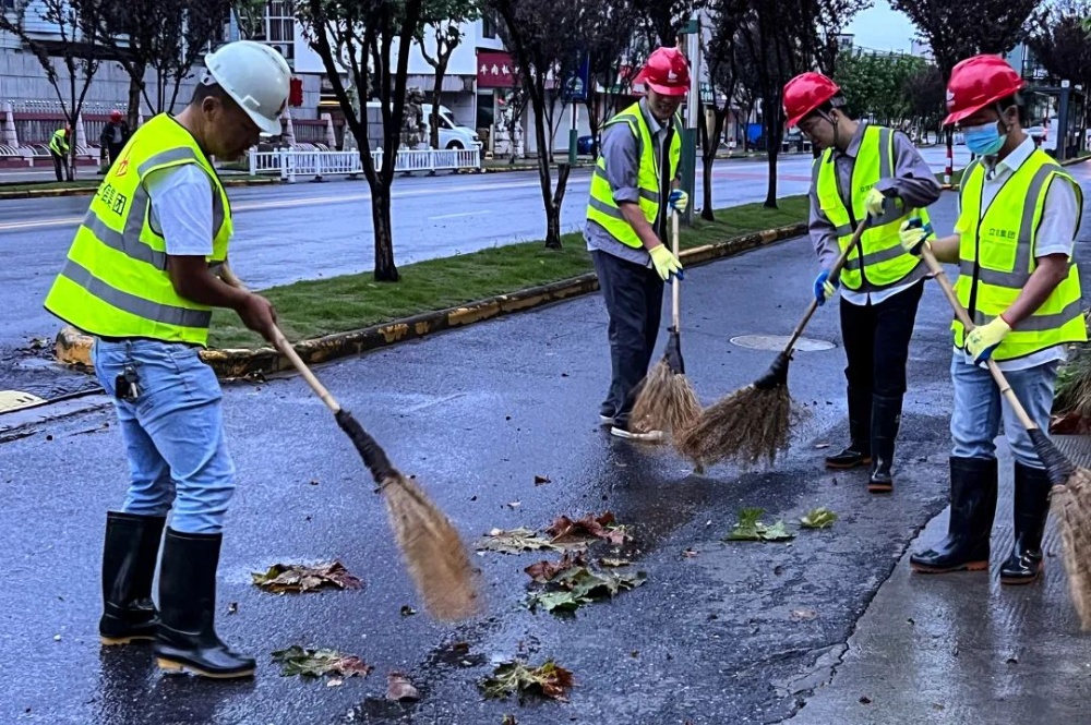 臺風(fēng)過境后,留下不少斷枝落葉、廢物垃圾。凌晨五點(diǎn),集團(tuán)志愿服務(wù)隊(duì)手拿掃帚等工具合力出動,開展道路巡查、落葉清掃、路障清除等文明創(chuàng)建志愿活動,在大家的鼎力配合下,城市道路迅速恢復(fù)“顏值”。